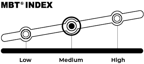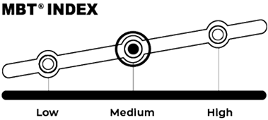 Bascule MBT équilibrée avec grande stabilité pour un usage tout au long de la journée.
